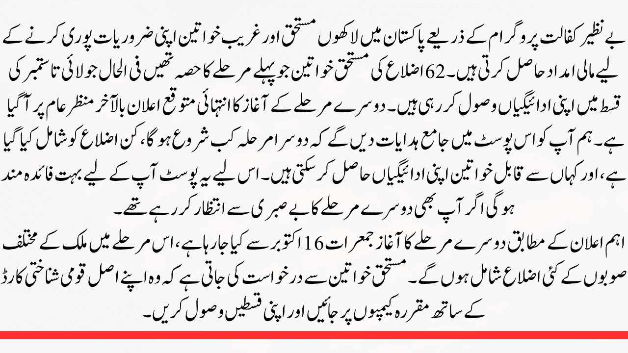 For needy and impoverished women, this Benazir Kafalat Program installment is nothing short of a blessing. Thousands of women from additional districts will also have access to the facility with the start of the second phase.