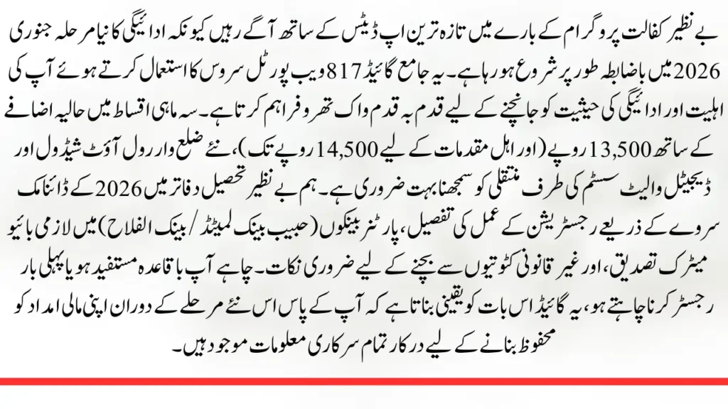 Benazir Kafalat New Phase Starts in January 2026 – Complete Guide: Stay ahead with the latest updates on the Benazir Kafalat Program as the new payment phase officially kicks off in January 2026. This comprehensive guide provides a step-by-step walkthrough for checking your eligibility and payment status using the 8171 web portal and SMS service. With the recent increase in quarterly installments to Rs. 13,500 (and up to Rs. 14,500 for eligible cases), it is crucial to understand the new district-wise rollout schedule and the transition toward the BISP Digital Wallet system.