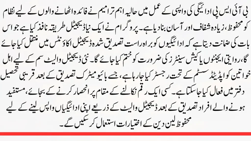 Recent significant modifications to the BISP Payment Withdrawal Process have made the system safer, more transparent,and simpler for beneficiaries.The program has implemented a new digital method that guarantees payments are transferred straight into verified digital accounts, eliminating the need for traditional agents or cash centers.This modification seeks to shorten wait times, do away with intermediaries, and avoid problems like biometric failure or deduction complaints. Eligible women are being registered for the new Digital Wallet SIM under the updated system, which can be activated at the closest tehsil office following biometric verification. Instead of depending on a single withdrawal location, beneficiaries will be able to use secure transaction options to withdraw their payments through the digital wallet after verification.