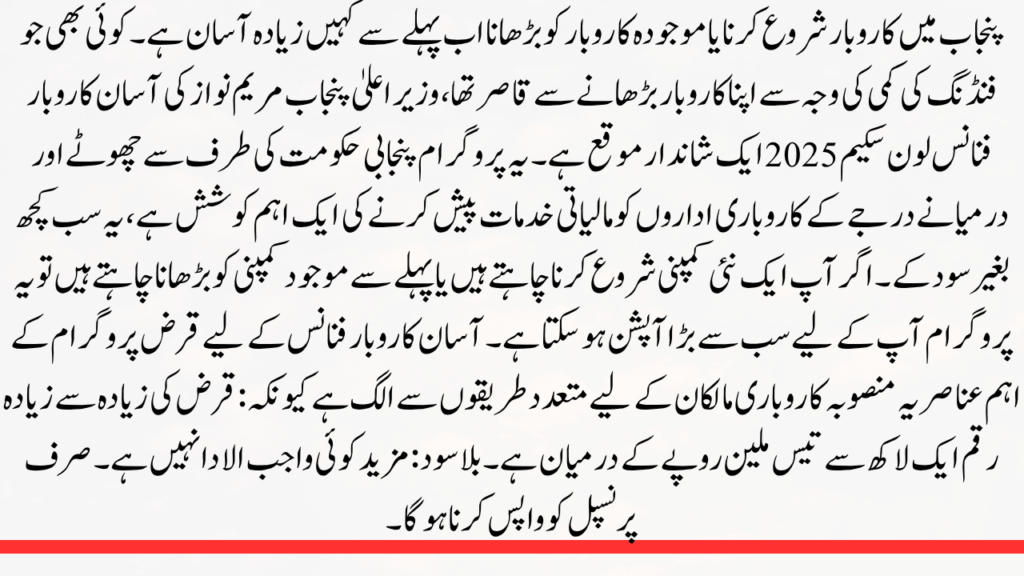 The Easy Business Finance Scheme 2025, introduced by Punjab Chief Minister Maryam Nawaz, is a major initiative that will important expand business opportunities in the punjab. This program gives an opportunity for youth and business owners to grow their businesses without worrying about money. If you have a solid business idea but lack the necessary funds, this program is the best way to fulfill your dreams.Start your business journey with confidence by applying