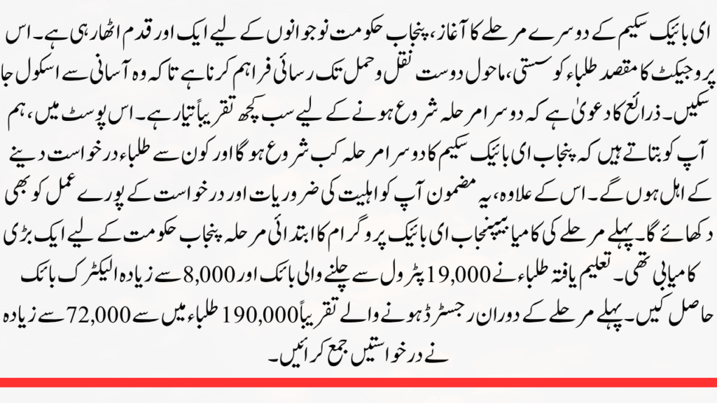 The launch of the second phase of the E-Bike Scheme, the Punjab government is taking another step for the young. The project aims to provide students with access to afford, eco-friendly transportation so that they can easily commute to school. Sources claim that everything is almost ready for the second phase to begin. In this post, let us tell you when the second phase of the Punjab E-Bike Scheme will start and which students will be eligible to apply. Also, this article will show you the eligibility requirements and the entire application process.