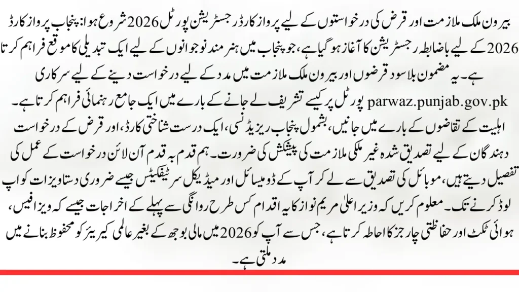 The Parwaz Card Registration Portal 2026 is now open. This is a chance for young people and business owners in Punjab. The Punjab Government started this program. It helps people who want to work in countries or start their own small businesses. The Parwaz Card Registration Portal 2026 does all of this without charging any interest. It is all done online. The Parwaz Card Registration Portal 2026 is a thing, for the youth and entrepreneurs of Punjab.
