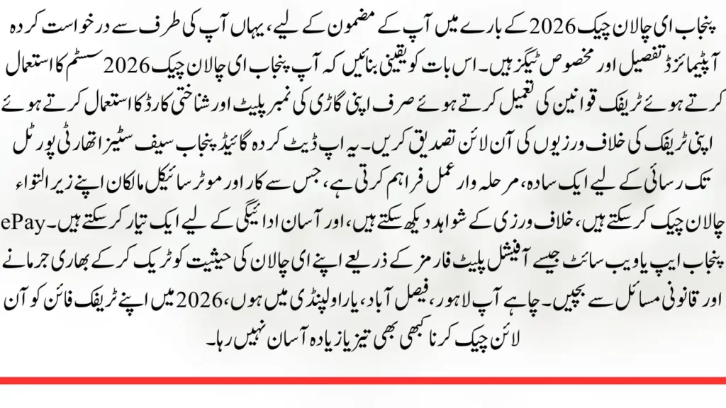 Punjab E-Challan Check 2026Punjab E-Challan Check 2026